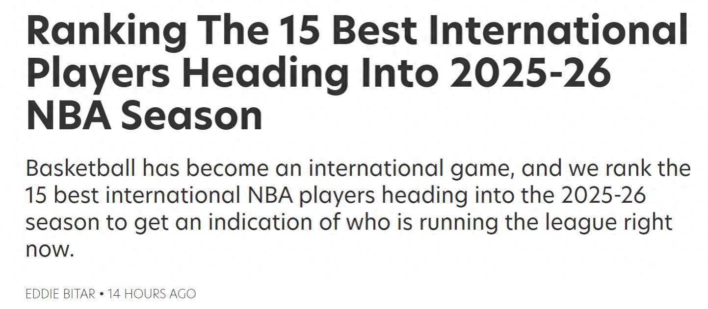 湖人新核东契奇排第4!在又一个赛季结束后,美媒《fadeawayworld》根据最新表现公布NBA现役国际球员TOP15名单,其中火箭队申京11名,约基奇夺魁。