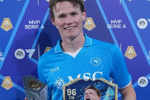 麦克托米奈本赛季在那不勒斯各赛事36场13球6助,夺得意甲冠军,当选意甲赛季MVP。