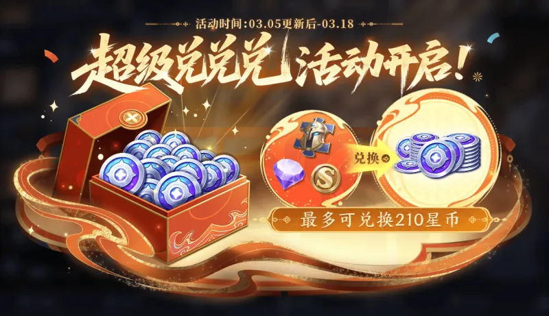 3月5日更新后-03月18日23:59可参与活动兑换星币和亲密玫瑰,最多可兑换210星币:
