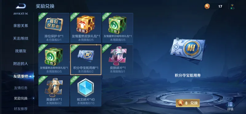 此外,我们还可通过回忆礼册、友情重燃、战令商店及游戏活动积攒荣耀积分和积分夺宝抵用券。